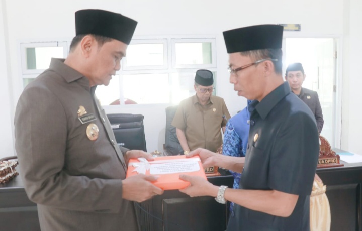 BARRU | Bupati Barru Ir.H. Suardi Saleh,M. Si secara resmi serahkan Raperda RAPBD Tahun 2023 kepada Ketua DPRD Kab Barru Lukman T dalam Rapat Paripurna Tingkat I DPRD diruang sidang DPRD Barru, Selasa 22/11/2022.