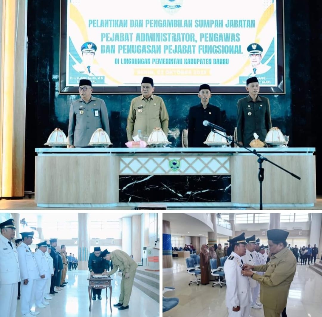 BARRU – Bupati Barru, Ir. H. Suardi Saleh, MSi melantik dan mengambil sumpah/pejabat Administrator dan Pengawas serta fungsional di Lingkungan Pemerintah Daerah Barru yang bertempat di Lantai 6 MPP Barru, Senin (2/10/2023).