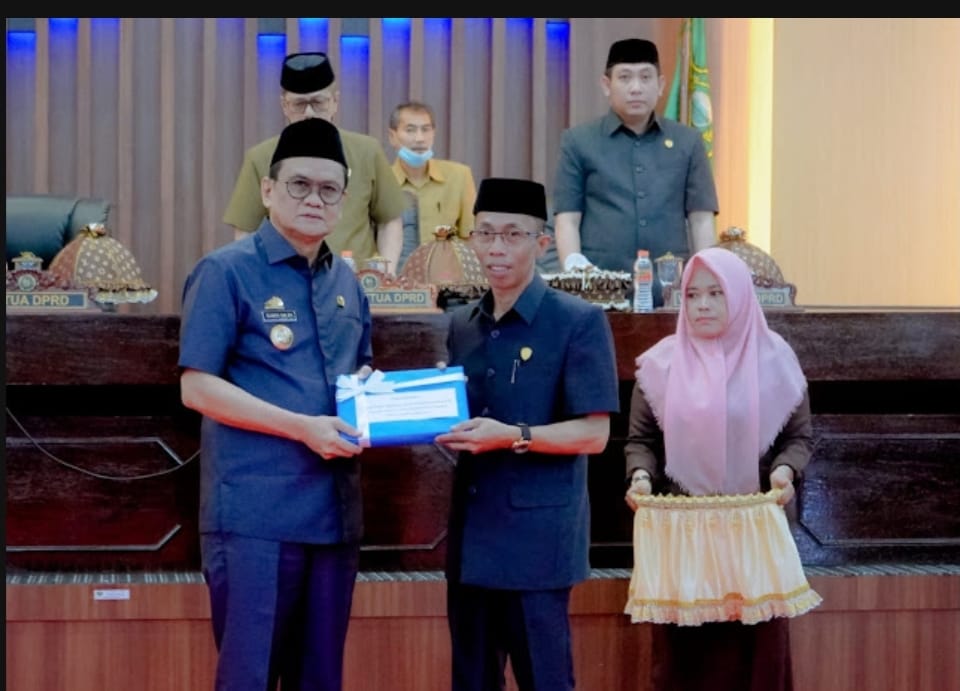 BARRU | Bupati Barru Ir. H. Susrdi Saleh, M. Si menyerahkan Ranperda tentang Pertanggungjawaban Pelaksanaan APBD Kabupaten Barru Tahun Anggaran 2021 dan diterima Ketua DPRD Barru Lukman,T pada Rapat Paripurna Tingkat I DPRD Barru, Rabu 22/6/2022.