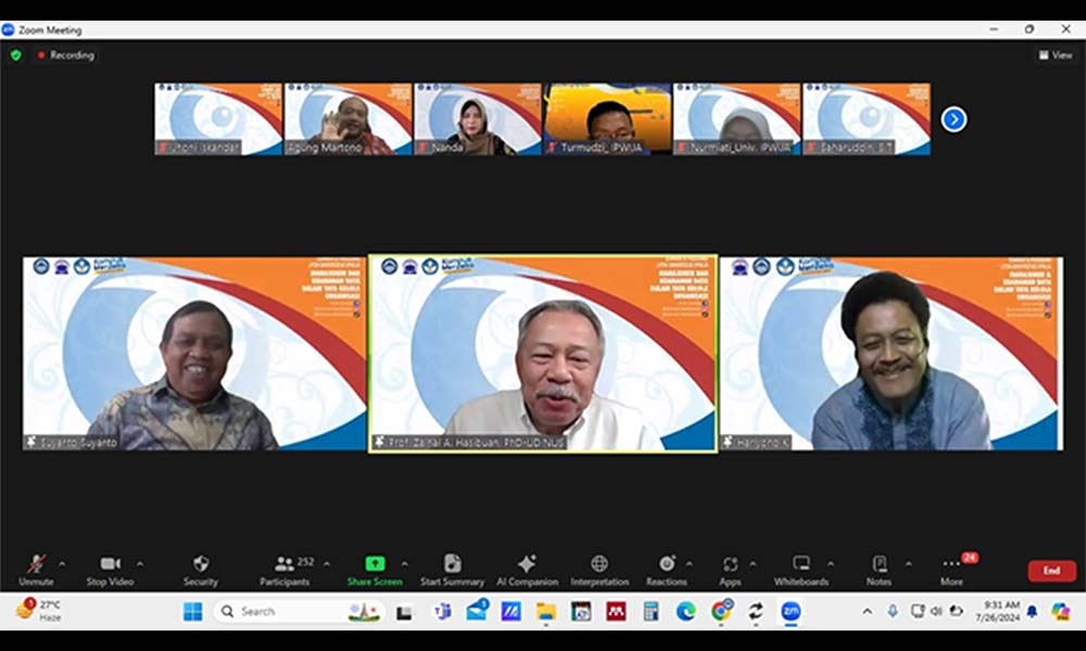 INFOINDONESIAINEWS.COM | JAKARTA – Universitas IPWIJA sukses menggelar Seminar Nasional dengan tema “Manajemen Keamanan Data dalam Tata Kelola Organisasi” melalui online atau daring, Jumat, 26 Juli 2024. Acara ini dihadiri oleh berbagai kalangan, mulai dari akademisi, praktisi industri, hingga mahasiswa yang tertarik pada bidang keamanan data dan manajemen organisasi dari berbagai daerah.