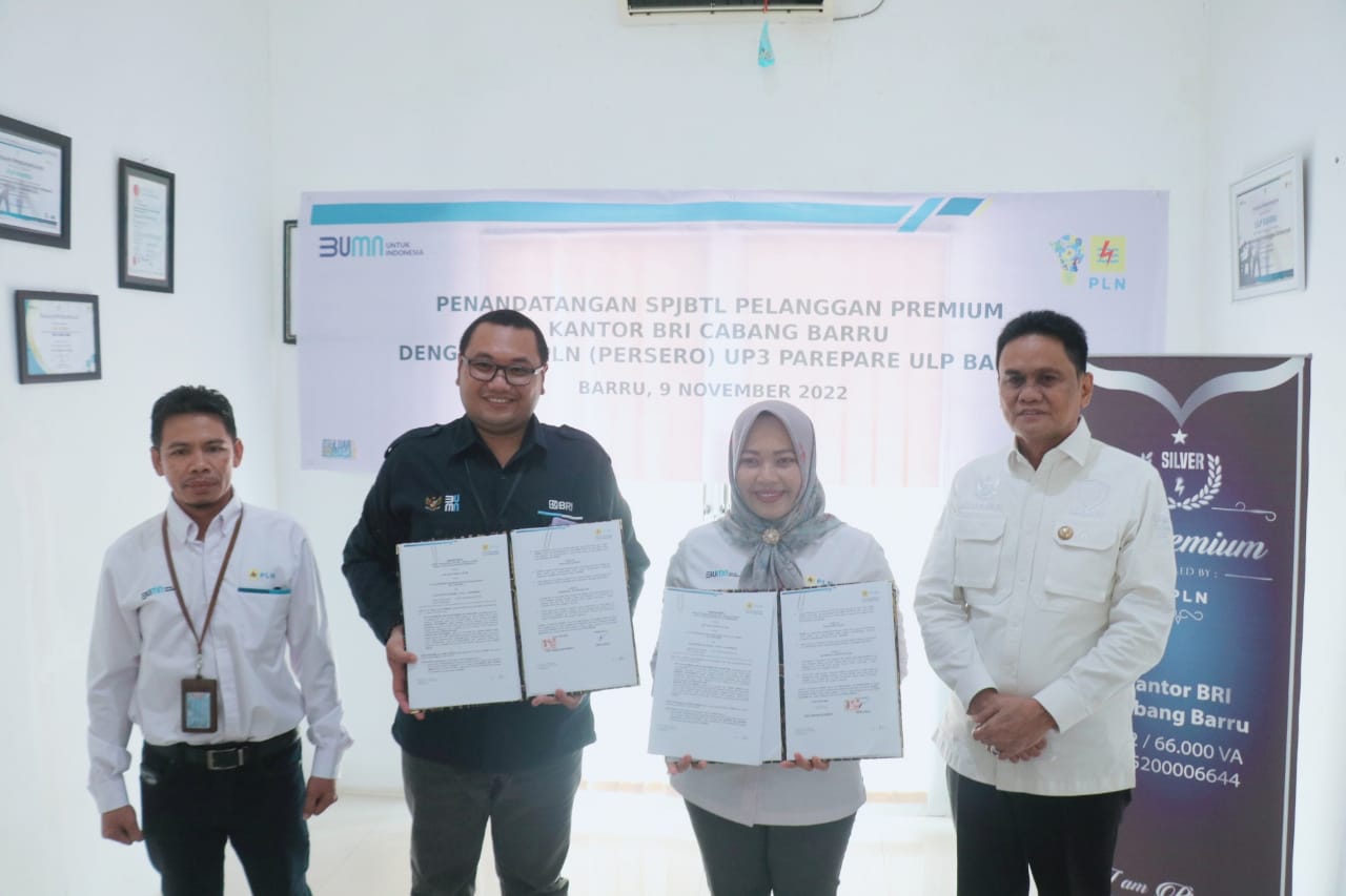 BARRU | Penandatangan SPJBTL pelanggan premium kantor BRI cabang Barru dengan PT. PLN (persero) UP3 Pare-pare ULP Barru, Rabu 9 /11/2022