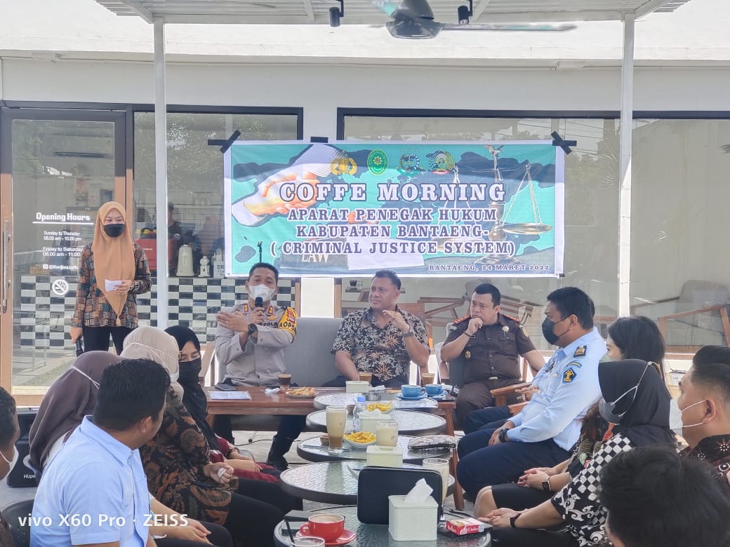 Dalam Sambutannya Kapolres Bantaeng menyampaikan bahwa kegiatan Coffe morning saat ini yang sifatnya nonformal adalah koordinasi dan silaturahmi antara Aparat Penegak Hukum termasuk Kepala Rutan Bantaeng untuk saling mengenal sehingga diharapkan dapat meningkatkan Sinergitas sebagai satu tim yakni Criminal Justice Sistem.