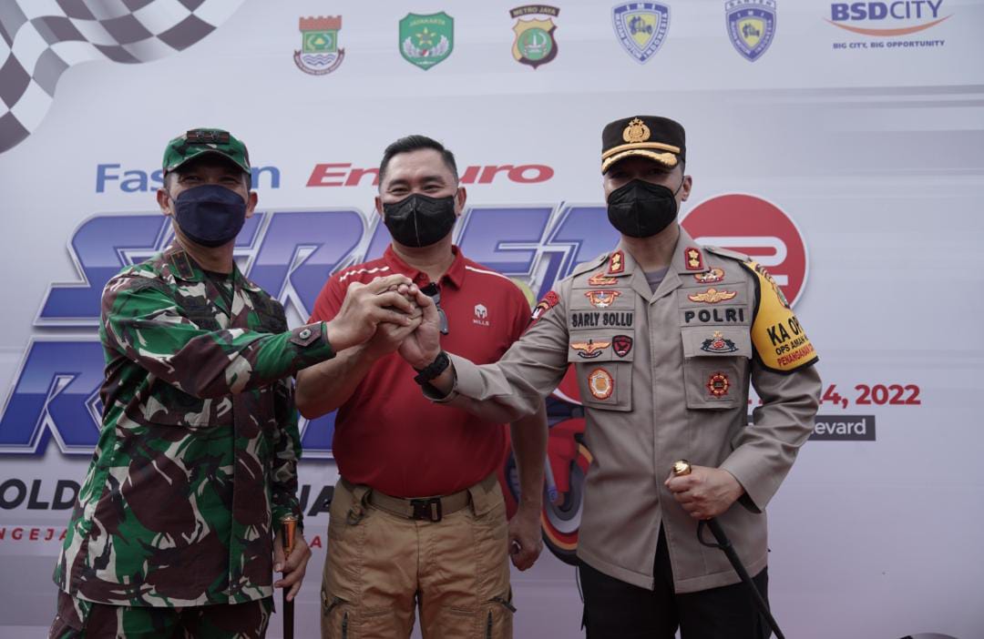 PAGEDANGAN , TANGERANG, BANTEN | Komandan Kodim 0510 Tigaraksa Letkol Inf Bangun IE Siregar M.I.Pol dampingi Kapolda Metro Jaya Irjen Fadil Imran melakukan kunjungan di Balap Motor Race (Sirkuit) Lurus di Jl Zona Lima Vanya Park, Kp.Celong RT 05/06 Ds Situgadung Kec Pagedangan, Kab Tangerang, Sabtu (23/04/2022).
