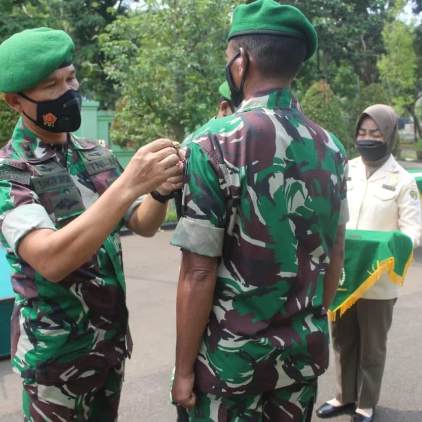 Kegiatan upacara pelepasan pindah satuan Kodim 0510/Trs berjalan dengan memenuhi protokol kesehatan.