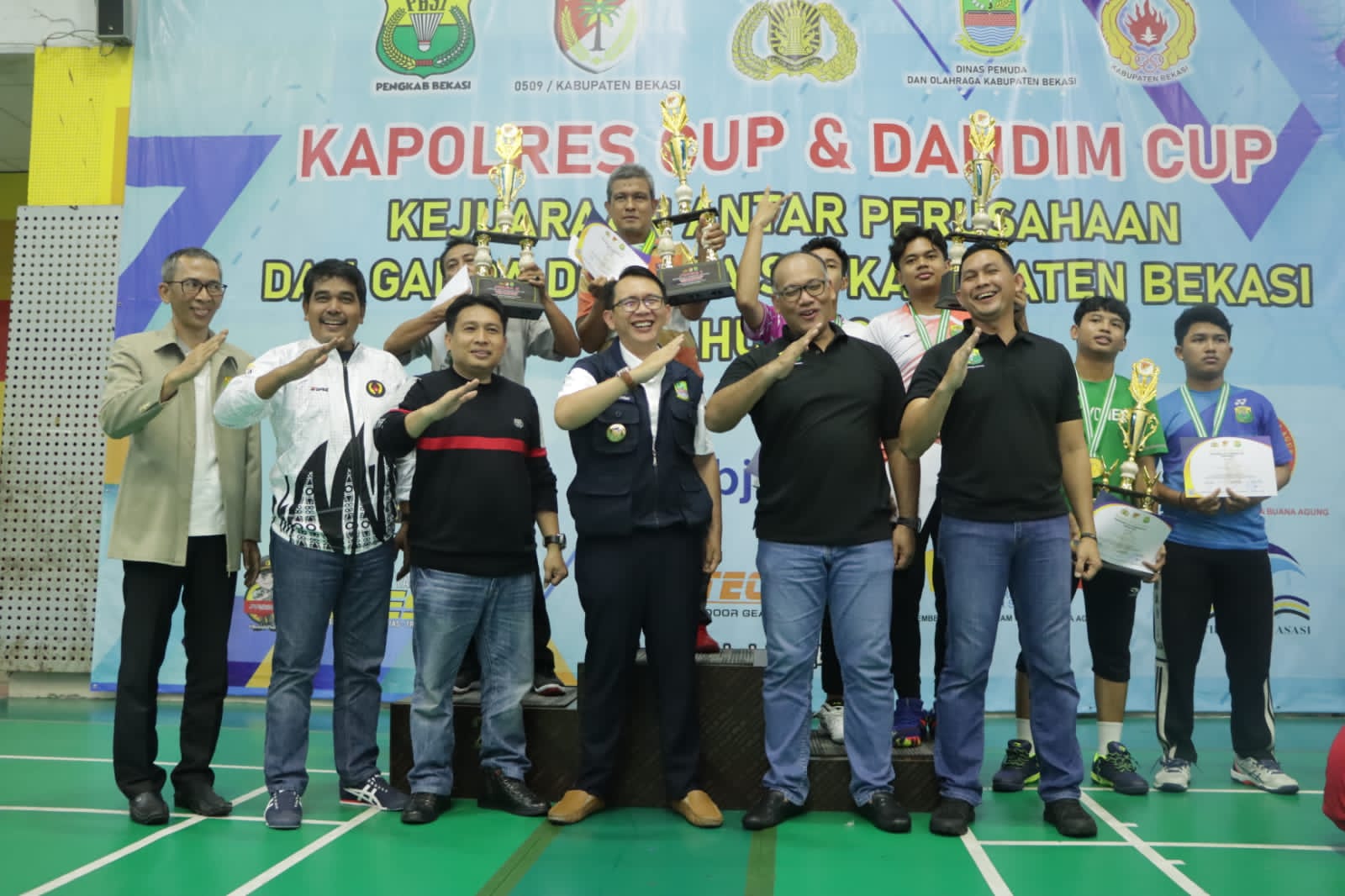 Tunggal Remaja Putra Madya dan semuanya Kategori Dandim Bersama Kapolres Metro Bekasi dan Forkopimda Kabupaten Bekasi ikut meramaikan Dengan Memberikan Pelangkat Berupa Piala dan Medali serta sejumlah Hadiah