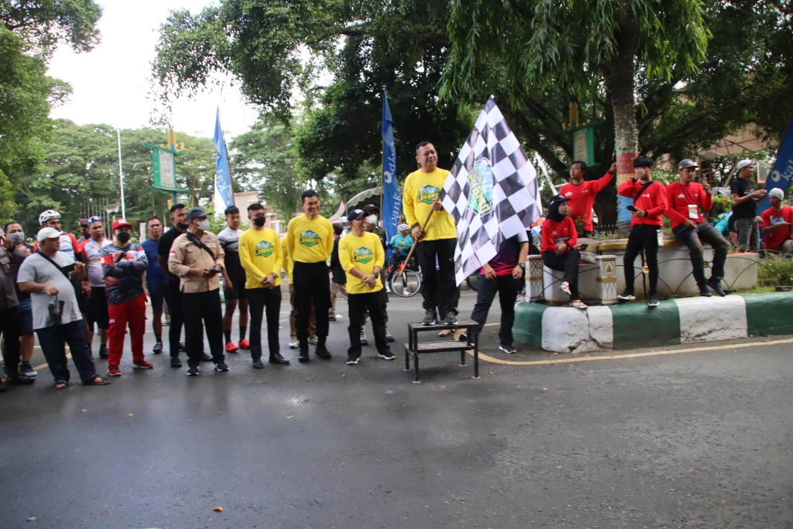 KANDANGAN | Komandan Kodim 1003/Hulu Sungai Selatan Letkol Inf Nurliwedie Nurdin Kanan, SM. Menghadiri acara pengibaran bendera start Tour de Loksado di depan Pendopo Bupati Hulu Sungai Selatan, Sabtu (23/7/2022)