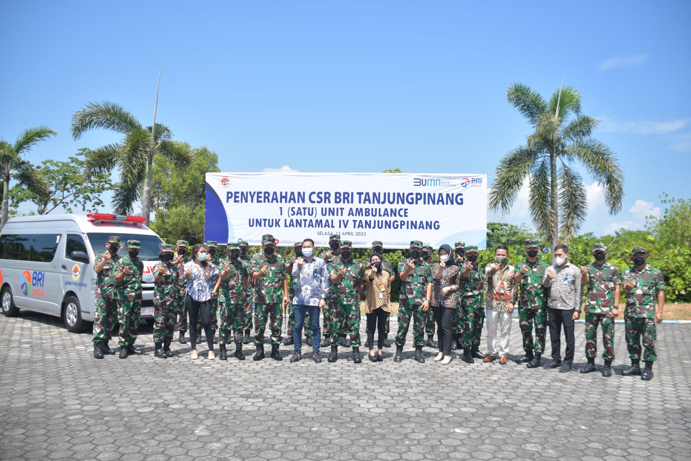 TANJUNGPINANG | Komandan Pangkalan Utama TNI Angkatan Laut (Danlantamal) IV Laksamana Pertama (Laksma) TNI Dwika Tjahja Setiawan, S.H., M.H., M.Tr.Opsla menerima bantuan Corporate Social Responsibility (CSR) dari Bank Rakyat Indonesia (BRI) Cabang Tanjungpinang berupa 1 (satu) Unit Mobil Ambulance Merk Toyota Hiace pada Selasa, 12/04/22.