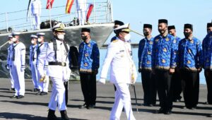 MAKASSAR |Komandan Lantamal VI (Danlantamal VI Makassar) Laksamana Pertama TNI Dr. Beny Sukandari, S.E., M.M., CHRMP, memimpin upacara peringatan hari jadi ke-77 TNI Angkatan Laut Tahun 2022 bertempat di Dermaga Layang Mako Lantamal VI Makassar, Senin (12/09/2022).
