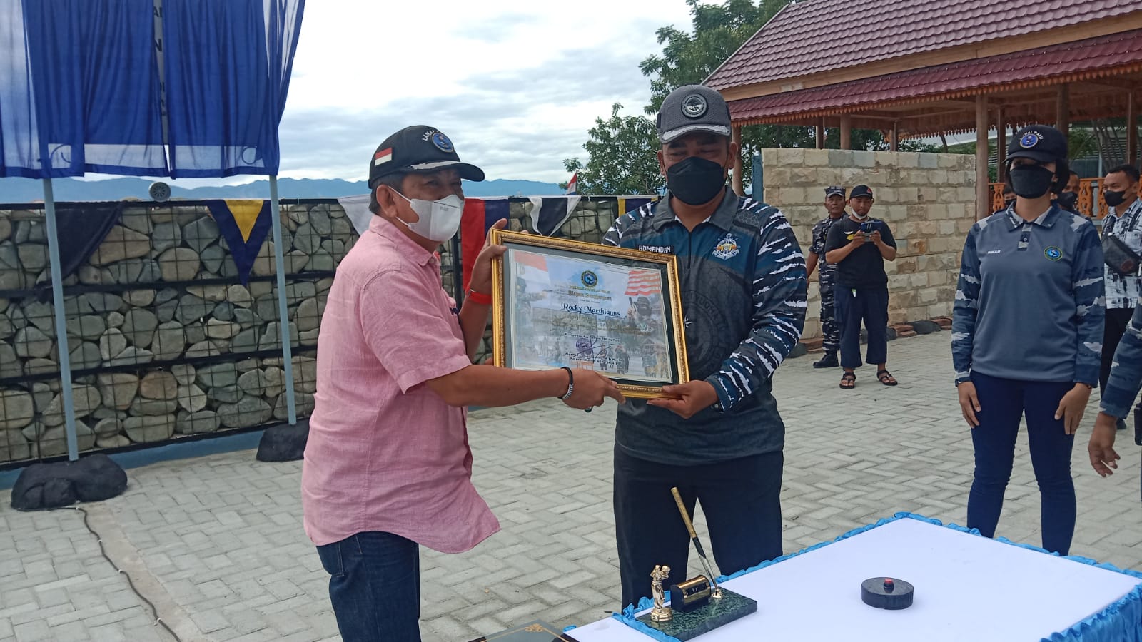 Acara peresmian dilanjutkan dengan penandatanganan Dokumen Hibah Pembangunan Lapangan Tembak dan Panahan Amiruddin Ponulele dari Dirut PT. Sumber Karya Utama Rocky Mathianus kepada Danlanal Palu segaligus pemberian sertifikat Penghargaan dari Komandan Lanal Palu kepada Bapak Rocky Mathianus.