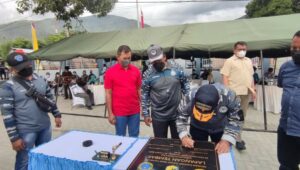 Kemudian dilanjutkan dengan pembukaan tirai Papan Tulisan lapangan tembak dan Panahan oleh Danlantamal VI Makassar sekaligus dilaksanakan Penandatangan Prasasti Lapangan Tembak dan Panahan Amiruddin Ponulele dilanjutkan pemotongan pita pelepasan balon oleh Danlantamal VI Makassar.