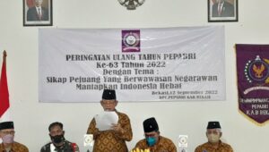 BEKASI | Kegiatan Sarasehan mengambil tema ” Sikap pejuang yang berwawasan Negarawan , mantapkan Indonesia Hebat, bergerak NKRI pulih lebih cepat bangkit lebih kuat” yang dihadiri sekitar 80 orang Senin 12 September 2022