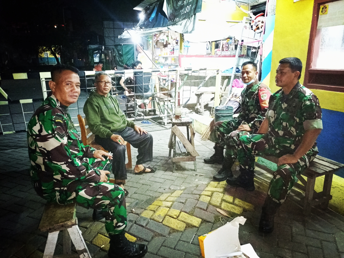 PASARKEMIS , TANGERANG, BANTEN | Untuk menciptakan rasa aman, dan tenteram bagi masyarakat, Danramil 11 Pasar Kemis, Kodim 0510/Trs Kapten Arm Tedy Susanto memonitoring langsung PAM suwakarsa di melalui siskamling di RW 08 Desa Gelam Jaya Kecamatan Pasar Kemis Kabupaten Tangerang, Sabtu malam (09/04/2022).