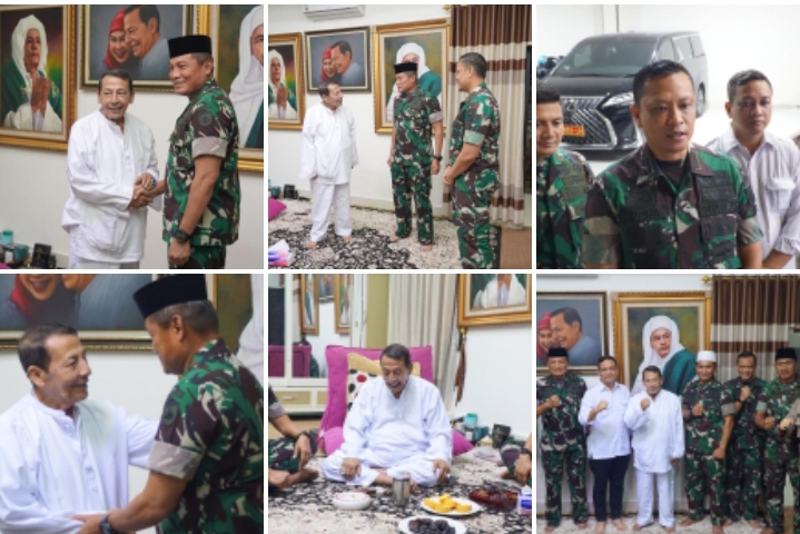 KOTA PEKALONGAN – Panglima Kodam IV/Diponegoro Mayjen TNI Widi Prasetyo di dampingi sejumlah pejabat teras Kodam IV Diponegoro melaksanakan kunjungan ke tempat ulama karismatik Habib Luthfi bin Yahya yang bertempat di Jalan Dokter Wahidin No.70 Noyontaan Kecamatan Pekalongan Timur Kota Pekalongan, Selasa malam (9/5/23).