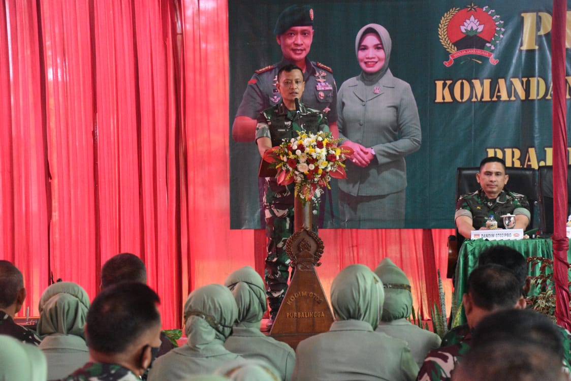 BANYUMAS | Demikian penegasan Komandan Korem 071/Wijayakusuma Kolonel Inf Yudha Airlangga, S.E., saat memberikan Jam Komandannya pada kunjungan kerja di Kodim 0702/Purbalingga dan Kodim 0704/Banjarnegara, Jumat (20/5/2022).