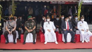 PURWOKERTO | Komandan Korem 071/Wijayakusuma, Kolonel Inf Dwi Lagan Safrudin, S.I.P., hadiri upacara peringatan Hari Jadi Ke-451 Kab Banyumas, di Halaman Pendopo Sipanji Pemkab Banyumas, Purwokerto, Selasa (22/2/2022).