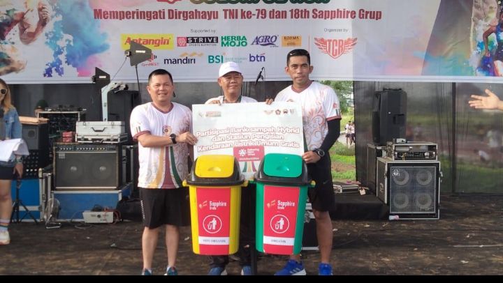 Usai dilaksanakannya Colorful run, Danrem 071 Wijayakusuma beserta pimpinan Sapphire Grup melakukan opening daur ulang sampah untuk kesehatan.