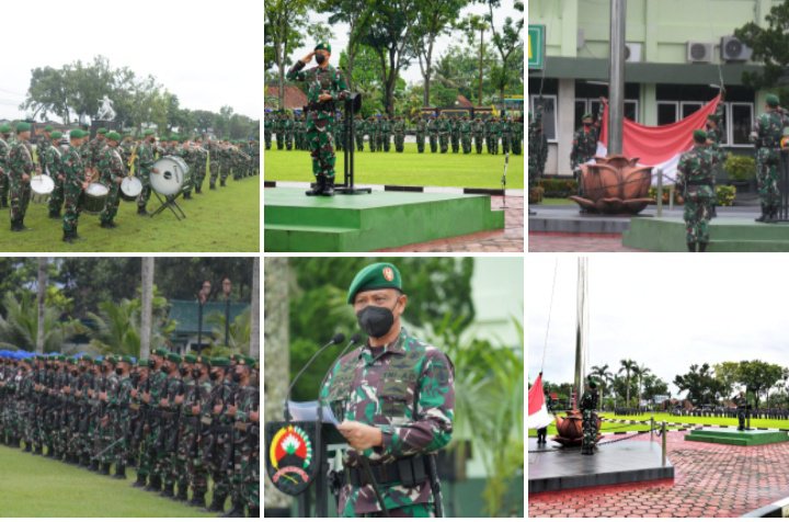 BANYUMAS | Danrem 071/Wijayakusuma Kolonel Inf Yudha Airlangga, S.E., bertindak selaku Inspektur Upacara Bendera 17 an bulan Oktober 2022, di Makorem 071/Wijayakusuma Sokaraja, Banyumas. Senin (17/10/2022).