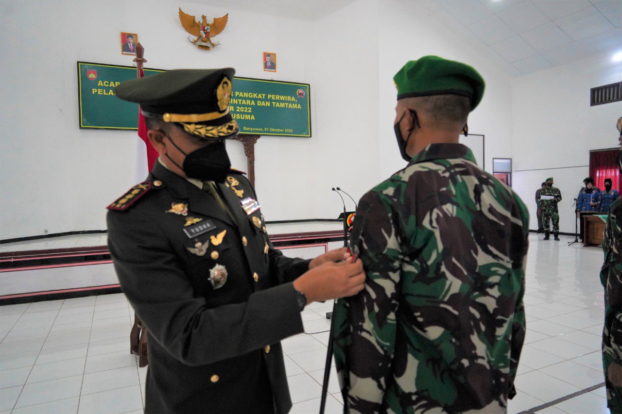 BANYUMAS | Danrem 071/Wijayakusuma Kolonel Inf Yudha Airlangga, S.E., usai menghadiri Upacara Peringatan Hari Kesaktian Pancasila di Pendopo Sipanji Pemkab Banyumas, melantik prajurit Wijayakusuma yang naik pangkat periode 1 Oktober 2022, di Gedung Pertemuan A.Yani Makorem 071/Wijayakusuma, Sokaraja, Banyumas. Sabtu (1/10/2022).