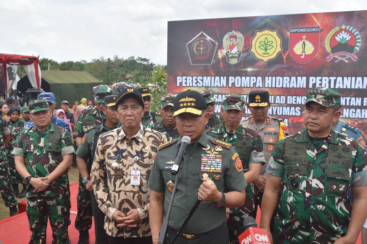 Panglima TNI mengatakan, pembangunan fasilitas pompa hidram dari Sungai Serayu di Desa Tambaknegara Kecamatan Rawalo Kabupaten Banyumas, Jawa Tengah, untuk mengairi area persawahan di sejumlah desa sebagai pendukung peningkatan produksi pertanian.
