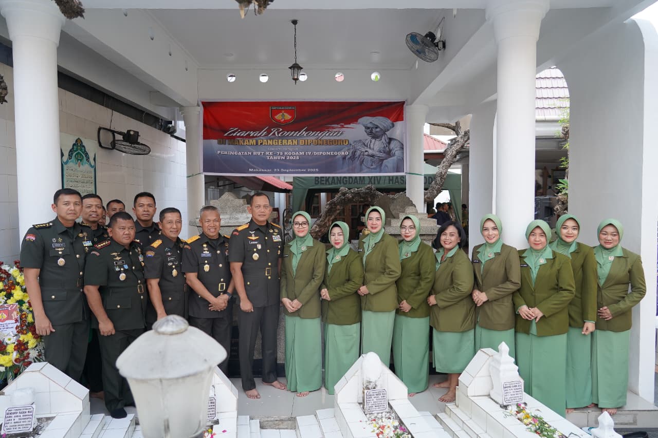 MAKASSAR – Danrem 071/Wijayakusuma Kolonel Inf Lukman Hakim, M.Han., dengan didampingi Ketua Persit Kartika Chandra Kirana Koorcab Rem 071 PD IV/Diponegoro Ny. Inda Lukman Hakim, ikuti Ziarah Pangeran Diponegoro di Makassar, Sulawesi Selatan. Selasa (23/9/2025).