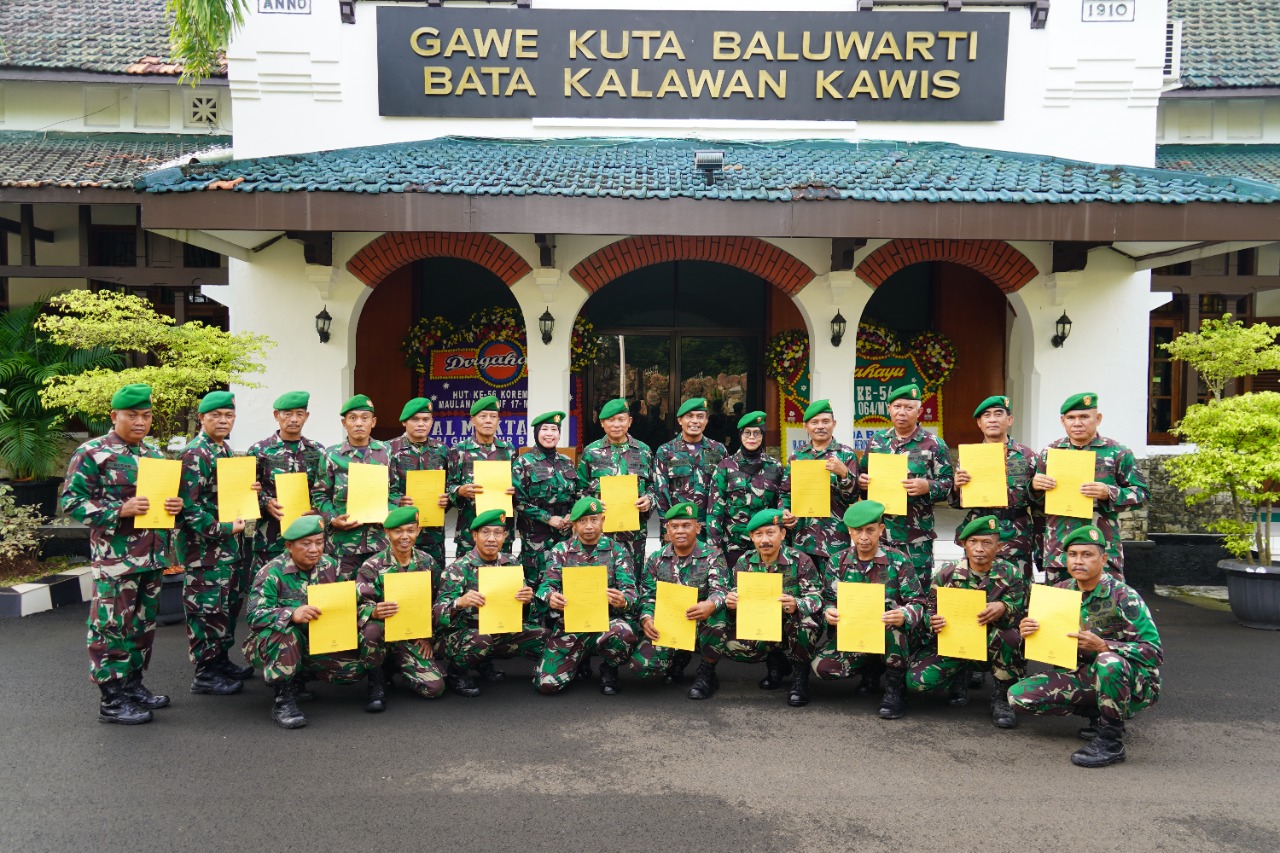 Hadir pada upacara wisuda Purnawirawan tersebut, Para Kasi, Pasi, prajurit, PNS, serta para wisudawan Purnawirawan .