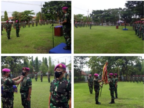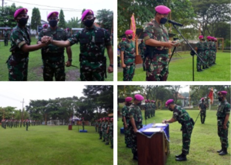 SURABAYA | Komandan Batalyon Howitzer 2 Marinir Letkol Marinir Jon Gustap Kahiking, M.Tr.Opsla., CTMP, memimpin upacara Serah terima jabatan (Sertijab) Komandan Baterai Tempur Bravo (Danraipur B) dari Kapten Marinir Iswanto kepada Lettu Marinir Bagus Raganata, S.T.Han, serta mengukuhkan jabatan Pasi Intel Batalyon Howitzer 2 Marinir kepada Kapten Marinir Iswanto yang dilaksanakan di lapangan futsal “Rabain Ja’ffar”, Batalyon Howitzer 2 Marinir, Karangpilang, Surabaya. Selasa (26/4/2022).
