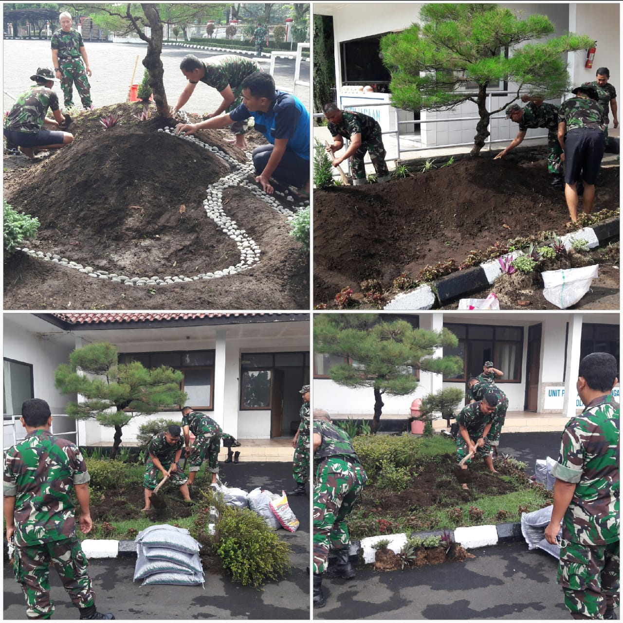BANDUNG, JABAR | Disela kesibukan Kogartap II/Bandung, anggota Detasemen Markas Kogartap II/Bandung memperindah pemandangan lingkungan salah satunya mempercantik membuat taman di halaman perkantoran,Senin (14/3/2022).