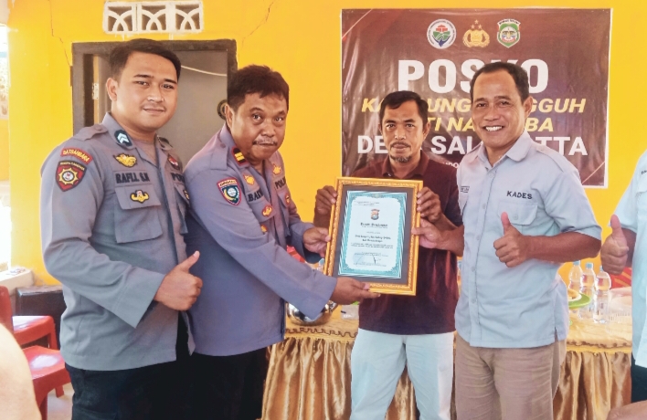 infoindonesiainews.com | POLRES MAMUJU TENGAH – Desa Salugatta, Kecamatan Budong-budong, Kabupaten Mamuju Tengah, hari ini menerima penghargaan dari Kapolres Mamuiu Tengah (Mateng) sebagai Kampung Bebas Narkoba terbaik dalam jajaran Polda Sulawesi Barat. Acara penyerahterimaan piagam penghargaan tersebut berlangsung di Posko Kampung Bebas Narkoba dengan dihadiri oleh sejumlah tokoh penting serta masyarakat setempat. Jumat (6/10/2023).