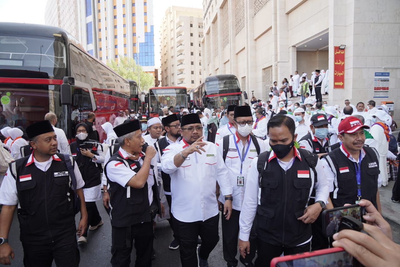 “Jumlah jemaahnya di sini 23 ribu lebih. Yang terbesar. Saya ingin memastikan mobilitas jemaah menuju Arafah bisa berjalan baik,” kata Gus Men.