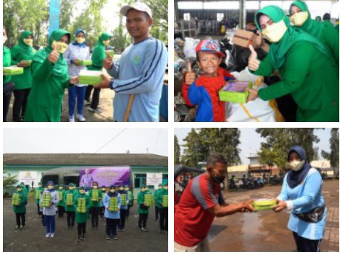 Dalam kegiatan tersebut, dibagikan nasi kotak kepada petugas kebersihan disekitar GOR Goentur Darjono Purbalingga, para tukang becak di Terminal Kalikajar Purbalingga serta para pekerja pengolah limbah sampah di Desa Pliken Kecamatan Sokaraja Lor Banyumas.