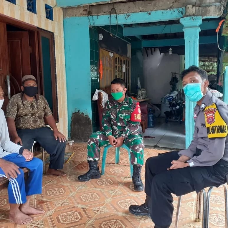 KRESEK, TANGERANG, BANTEN | Koramil 07/Kresek Kodim 0510/Trs melalui para anggotanya melaksanakan serter dan komsos di wilayah binaan masing – masing dalam rangka mendisiplinkan protokol kesehatan di masa bulan suci ramadhan ini.