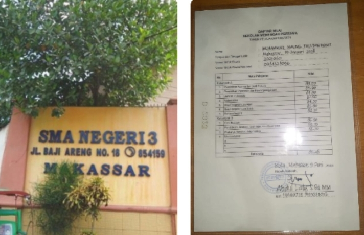 Makassar.01 Agustus 2023.Adanya dugaan menyangkut terkait lulusnya siswa siluman di SMAN 3 Makassar melalui Security beberapa pekan kemarin dimana pihak sekolah menyuruh orang tua dan anak ini mendaftar lewat jalur akademik prestasi nilai.