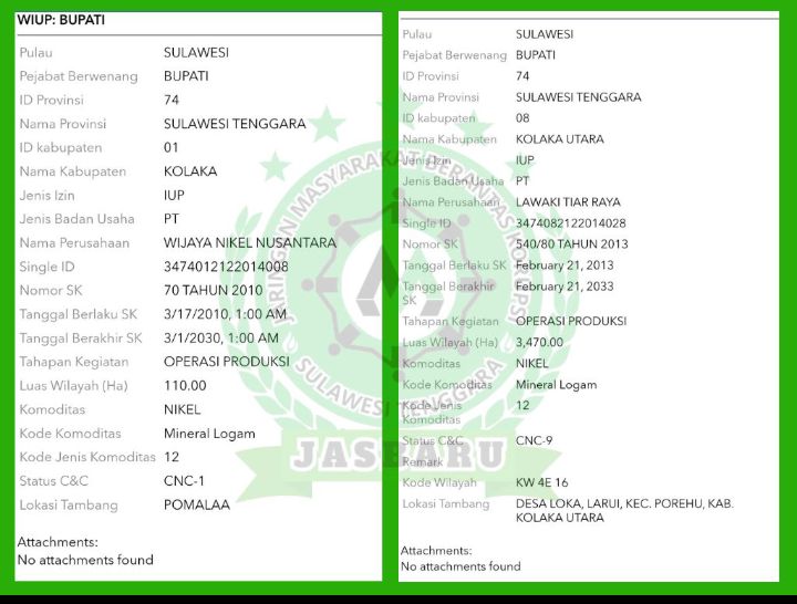 PT. Lawaki Tiar Raya (LTR) adalah perusahaan tambang yang beroperasi di kabupaten Kolaka Utara, sedangkan PT. Wijaya Nikel Nusantara (WNN) beroperasi di kabupaten Kolaka, provinsi Sulawesi Tenggara.