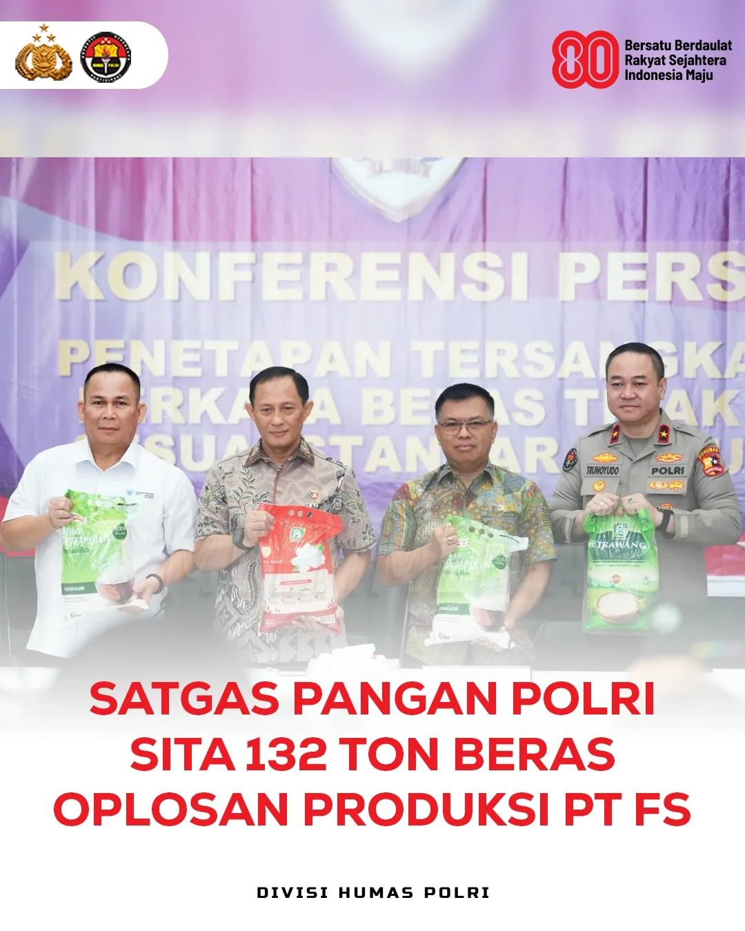 Kasatgas Pangan Polri, Brigjen Pol. Helfi Assegaf, S.I.K., M.H., mengungkapkan bahwa penyitaan mencakup 127,3 ton beras kemasan 5 kg dan 5,35 ton kemasan 2,5 kg dari berbagai merek premium, seperti Setra Ramos Biru, Setra Ramos Merah, Setra Pulen, dan Setra Wangi.
