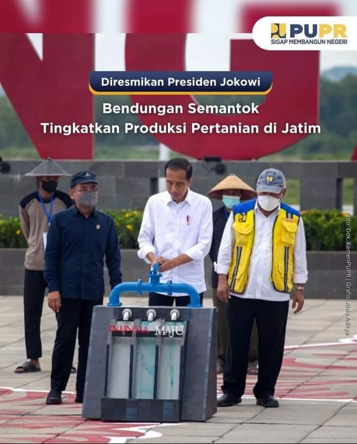 JAWA TIMUR | Presiden Joko Widodo didampingi Menteri PUPR Basuki Hadimuljono, Menteri Sekretariat Negara Pratikno, & Gubernur Jatim Khofifah Indar Parawansa meresmikan Bendungan Semantok di Kab. Nganjuk, Jawa Timur pada Selasa (20/12).