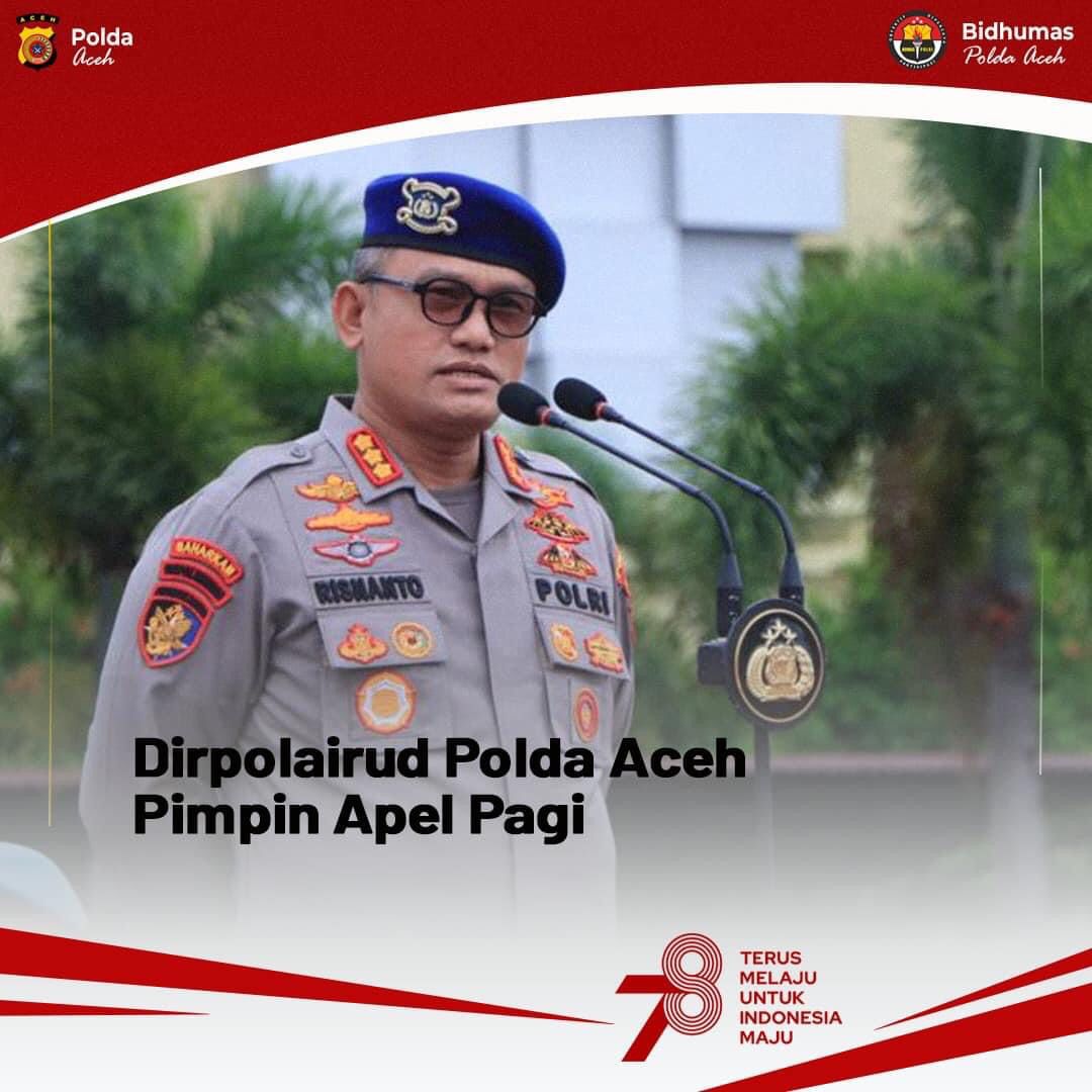 infoindonesiainews.com | POLDA ACEH – Dirpolairud Polda Aceh Kombes Pol. Risnanto, S. I. K., M. Si, memimpin apel pagi di Lapangan Mapolda Aceh, Senin (14/8/2023).