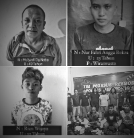 Ke empat pelaku di tangkap di tempat berbeda, Pelaku H(43) diamankan di tempat persembunyiannya jl.Lingkungan Tamanroya Kec. Tamalate Kab. Jeneponto dan A (23) diamankan di Jl.Muh.Tahir Kec. Tamalate Kota Makassar serta M (40) bersama R (22) Menyerahkan diri.