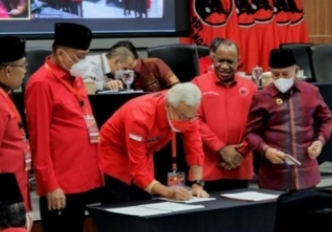 Sementara itu, penandatanganan surat pernyataan itu dipandu Ketua DPP PDIP bidang Kehormatan Komarudin Watubun, surat tersebut juga dibacakan oleh anggota Komisi II DPR RI ini.