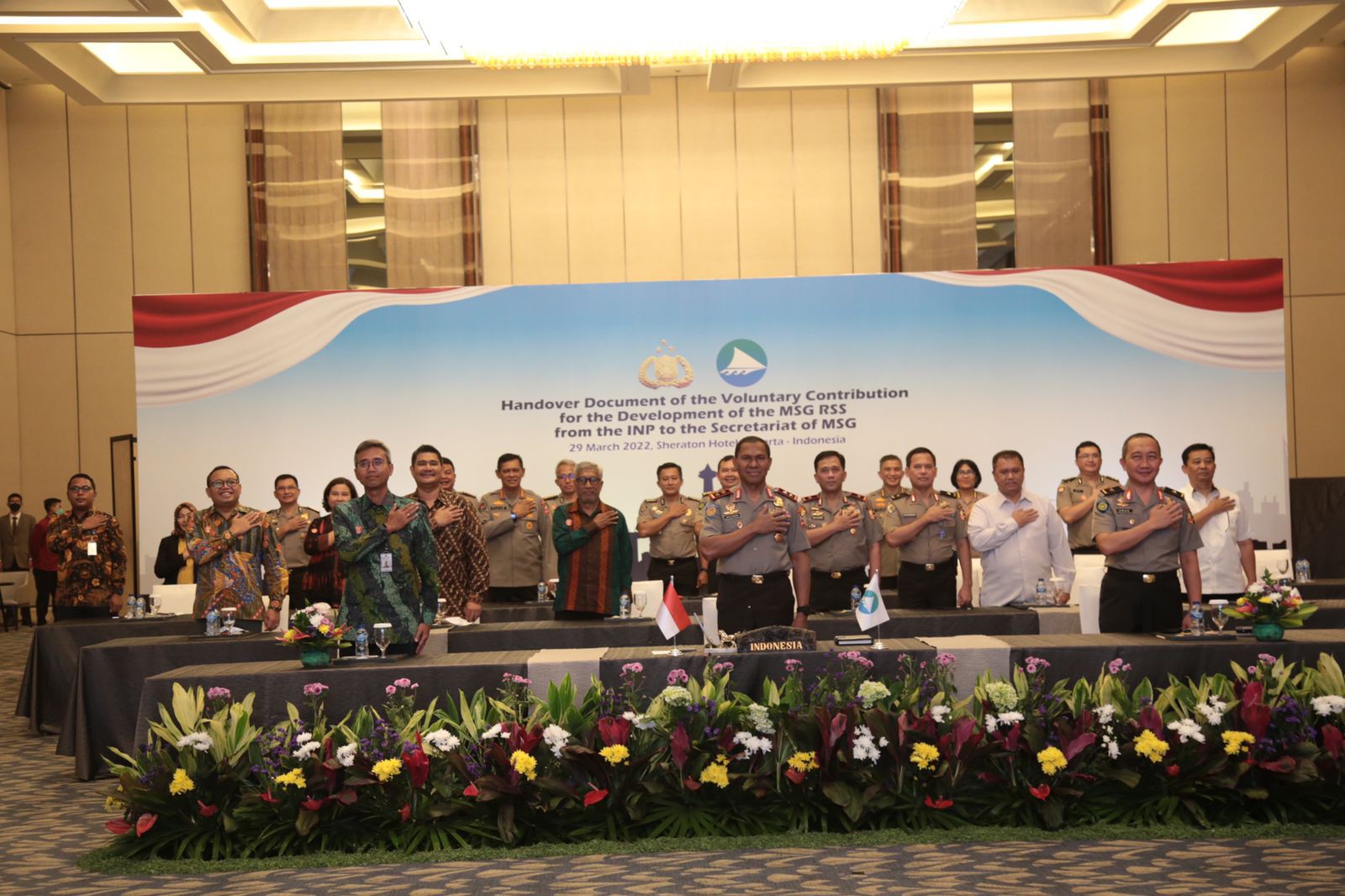 “Atas nama Pemerintah Republik Indonesia, Polri mendapat kehormatan menjadi tuan rumah acara serah terima sumbangan sukarela Polri kepada Melanesian Spearhead Group (MSG) guna mengembangkan strategi keamanan kawasan,” kata Johni kepada wartawan.