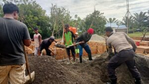 Dalam kegiatan tersebut, Bhabinkamtibmas AIPDA ALEXANDER. A yang masih berseragam lengkap tak segan membantu warganya, di sela-sela kegiatan dirinya juga senantiasa mengingatkan dan menghimbau warga binaanya untuk senantiasa menjaga keselamatan saat bekerja.