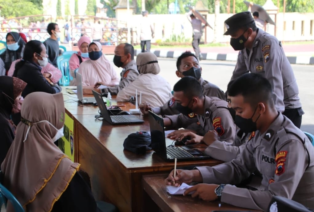 POLRES PEKALONGAN | Polres Pekalongan terus berupaya menggelar vaksinasi Covid-19 secara massal baik vaksinasi tahap 1, 2 dan Booster. Hal itu dilakukan untuk mendukung kebijakan pemerintah dalam menciptakan kekebalan kelompok atau herd immunity sehingga masyarakat tahan terhadap virus Covid-19.