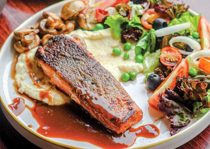 Menu pembuka Beef Tacos, tortilla isi makanan klasik Meksiko yang diisi dengan tumis bumbu daging sapi dan campuran sayuran salsa. Disandingkan dengan menu main course lezat Baked salmon with chimichurri, salmon panggang dengan chimichurri dan disajikan bersama salad yang dibalut dengan saus madu balsamic. Lengkap dengan Tomato Bisque Cream Soup, sup krim bisque tomat dengan kaldu udang dan herba rosemary aromatic. Dan ditutup dengan dessert manis Cheese Cake dengan crumbles granola dan caramel.