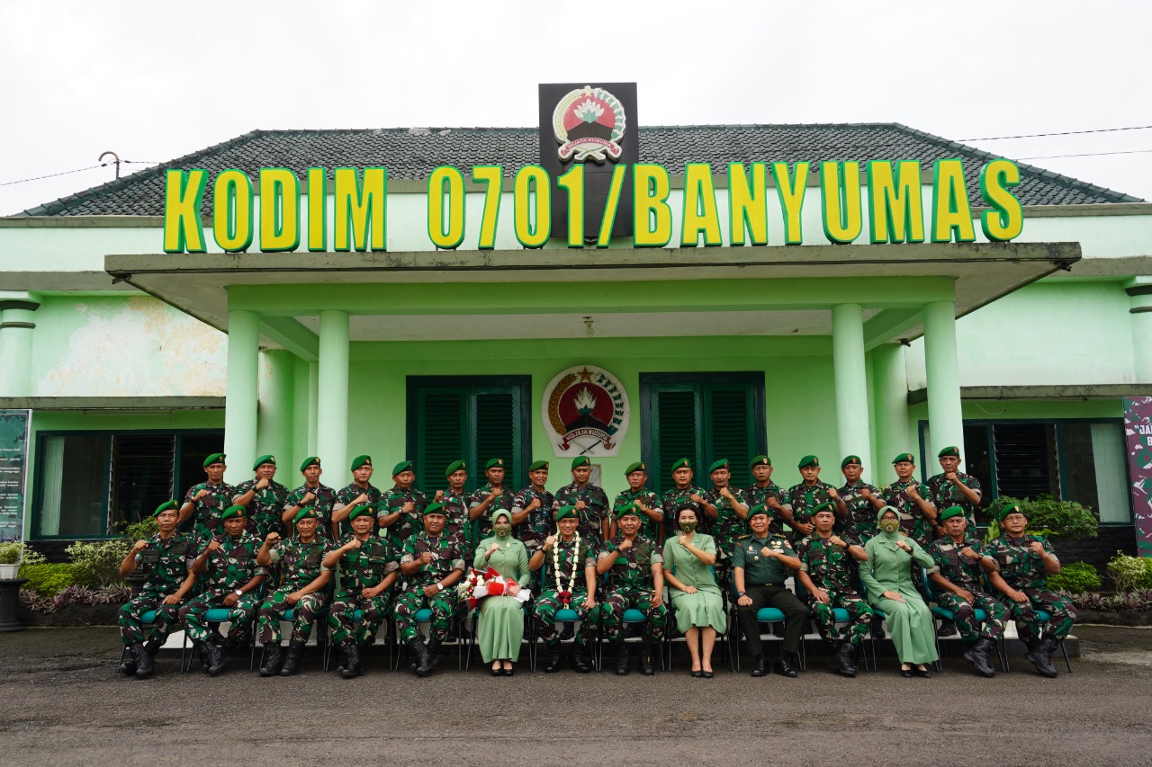 PURWOKERTO | Ketua Persit Kartika Chandra Kirana Koorcab Rem 071 PD IV/Diponegoro Ny. Natania Yudha Airlangga, saat mendampingi kunjungan kerja Danrem 071/Wijayakusuma Kolonel Inf Yudha Airlangga, S E , di Makodim 0701/Banyumas, menyerahkan bantuan kepada anggotanya yang sedang sakit. Rabu (19/10/2022) di Aula Jenderal Sudirman Makodim 0701/Banyumas, Purwokerto, Banyumas.