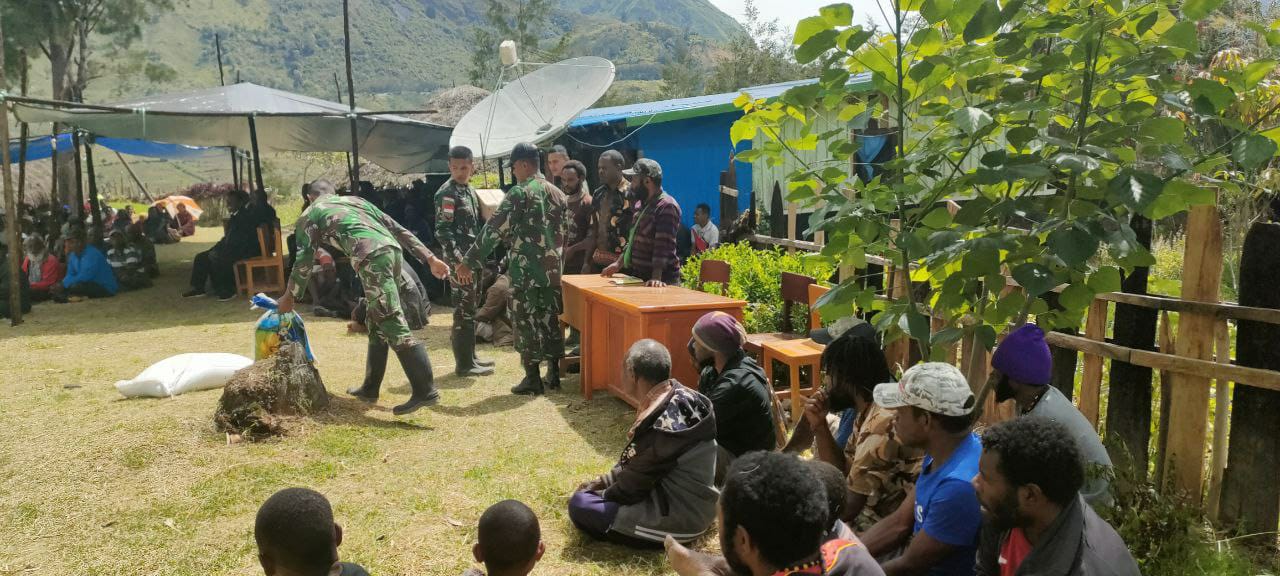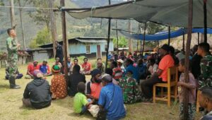 LANNY JAYA, PAPUA |Sebagai wujud belasungkawa dan peduli kepada sesama, Prajurit Satgas Yonif MR 412 Kostrad dari Pos Pirime turut hadir ke rumah duka salah satu warga yang meninggal dunia di Desa Bugumbak Distrik Pirime Kabupaten Lanny Jaya