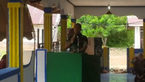 MERAUKE | Dalam rangka mempererat tali silaturahmi dan menjalin komunikasi yang baik antar masyarakat dan Satgas, warga Perbatasan se-Distrik Eligobel melaksanakan Halal bi halal sekaligus pengajian Akbar yang dihadiri oleh Satgas Pamtas Yonif 123/RW bertempat di Masjid Al-Mujahidin Kampung Metaat Makmur Distrik Eligobel Kab. Merauke, Minggu (08/05/2022).