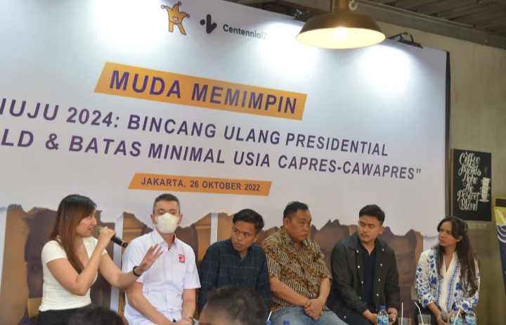 JAKARTA | Bertempat di Kopitok Kemang Jakarta selatan hari Rabu (26/10/2022), Sejumlah pemuda menggelar diskusi dengan tajuk “Muda Memimpin, Menuju 2024: Bincang Ulang Presidential Treshold dan Batas Minimal Usia Capres-Cawapres”. Diskusi tersebut dihadiri Pengamat Politik Refly Harun, Politisi PSI Rian Ernest, Vlogger Muda Cania Citta, dan politisi Arief Poyuono.