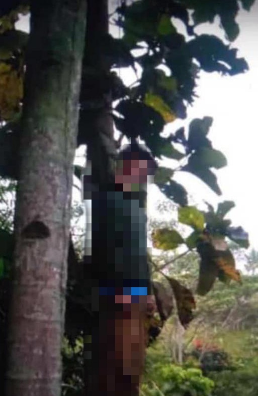 Menurut Saksi-saksi di antaranya berinisial (I) Ibu Korban (57) menerangkan bahwa “Pada hari Kamis 12 Mei 2022 sekira pukul 06.00 wib sewaktu saksi bangun tidur dan membuka pintu samping rumah sebelah utara, tiba-tiba melihat ada orang tergantung diatas pohon PETAI diketinggian kurang lebih 5 meteran, saksi waktu itu sudah dapat menduga bahwa yang mengantung diri adalah anak Kandung nya sendiri yang sedang dicari pihak Polisi karena melakukan pembunuhan.