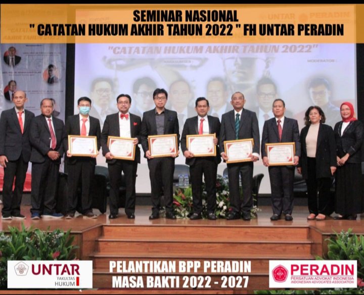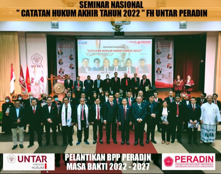 JAKARTA | Mengakhiri tahun 2022 PERADIN (Perhimpunan Advokat Indonesia) berkolaborasi dengan universitas Tarumanegara mengadakan acara catatan akhir tahun 2022 sekaligus pelantikan BPP PERADIN pada hari Kamis (29/12/2022) di universitas Tarumanegara Jakarta.