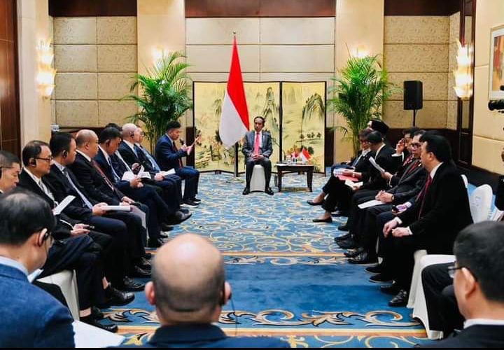 infoindonesiainews.com | CHENGDU – Presiden Joko Widodo menggelar pertemuan bisnis bersama Kamar Dagang Indonesia di Tiongkok (INACHAM) dan sejumlah pengusaha Tiongkok di Shangri-La Hotel, Chengdu, Republik Rakyat Tiongkok (RRT), pada Jumat, 28 Juli 2023. Dalam pertemuan tersebut, Presiden Jokowi menekankan komitmen Indonesia untuk menjaga investasi tetap stabil dan berjalan baik.