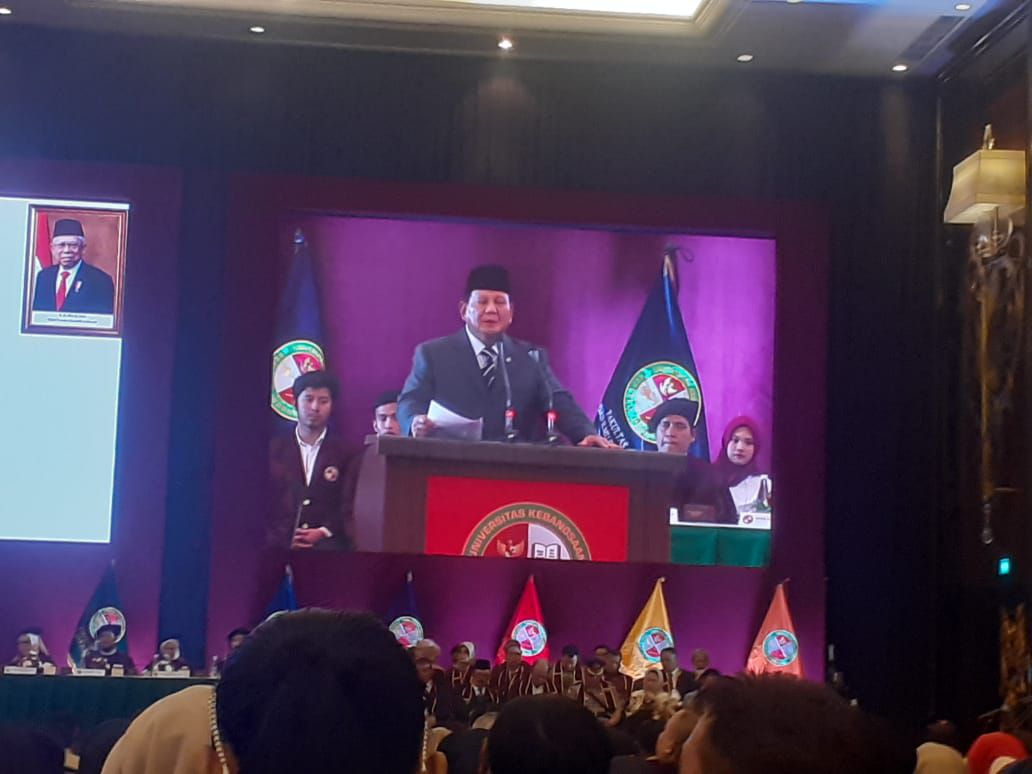 Hal itu disampaikan Prabowo saat menghadiri wisuda sarjana Universitas Kebangsaan Republik Indonesia (UKRI) di Trans Convention Center, Bandung, Jawa Barat, Kamis (29/2/2024).